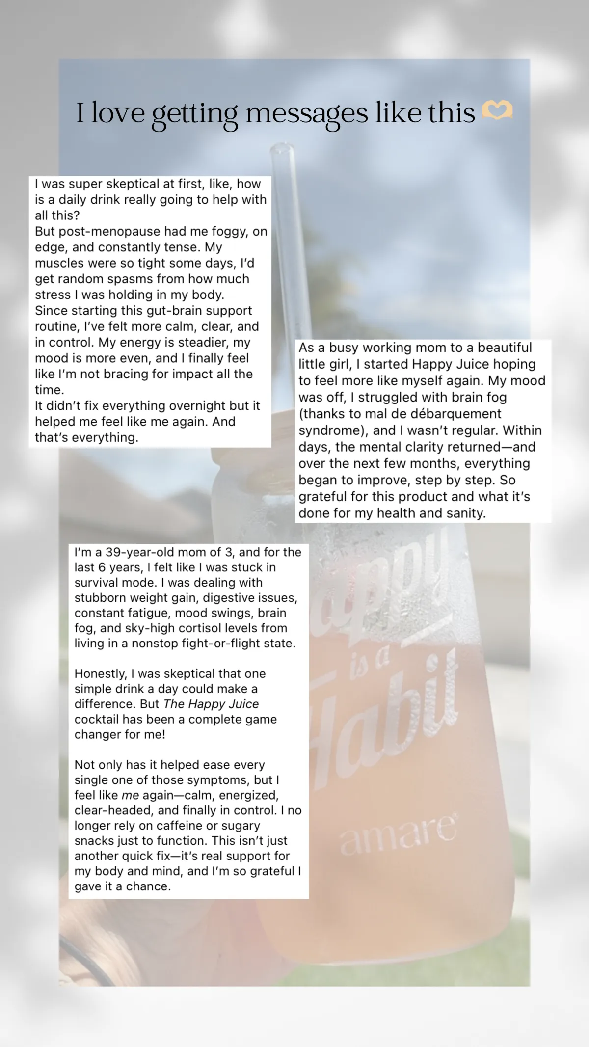 Happy Juice is a SCIENTIFICALLY PROVEN all-natural drink that increases SEROTONIN & DOPAMINE levels in the gut, optimizing your mental wellness by INCREASING THE PRODUCTION OF YOUR "FEEL GOOD" NEUROTRANSMITTERS